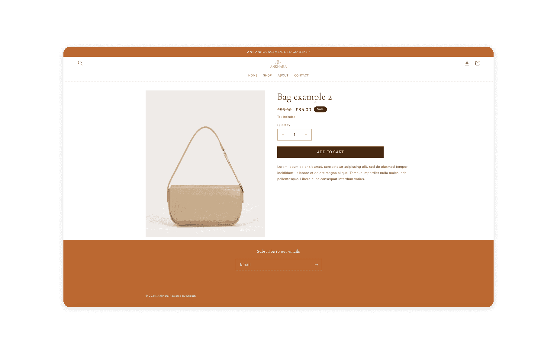 For Ankhara, a clothing brand, I designed and built a Shopify-based website aimed at enhancing user experience and increasing lead capture and site traffic. Using insights from the brand's style and the client’s vision, I developed a cohesive identity for the brand's store, refining color schemes and visuals to resonate with Ankhara’s target audience. I also trained the client on Shopify’s store management features, equipping them to independently handle inventory, promotions, and customer engagement.