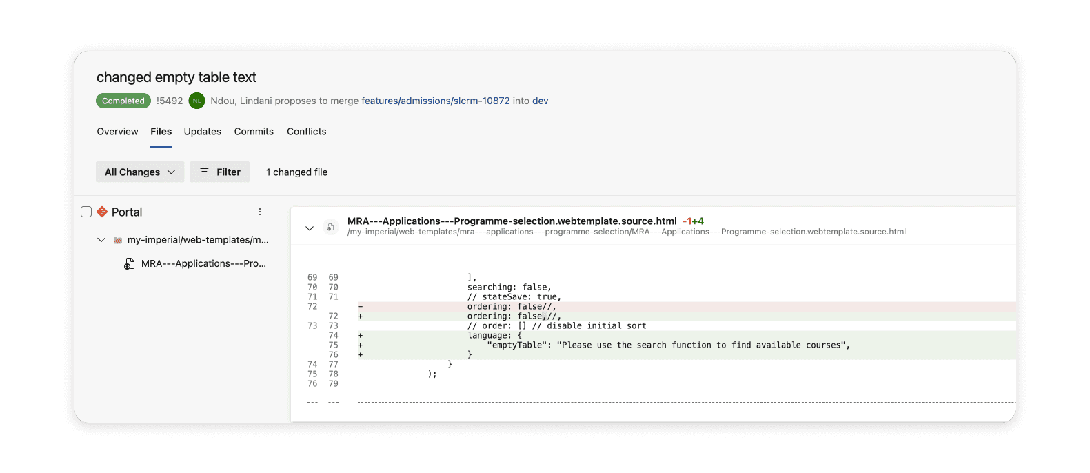 The Applications portal centralises Imperial College London's postgraduate and short course application process. Whilst applications were open, several issues were identified, both internally and by external stakeholders, requiring significant modifications to improve the platform’s usability and functionality. The variety of courses with different criteria also necessitated new features to ensure accurate data capture. Throughout this process, maintaining consistency with Imperial College’s branding was essential. I addressed long-standing tickets from the backlog, working with admissions SMEs to test and refine changes, benefiting both staff and prospective students. To improve efficiency, I developed a standard list of information for tickets, saving approximately three hours per task due to the system's complexity, laying the foundation for further platform improvements.