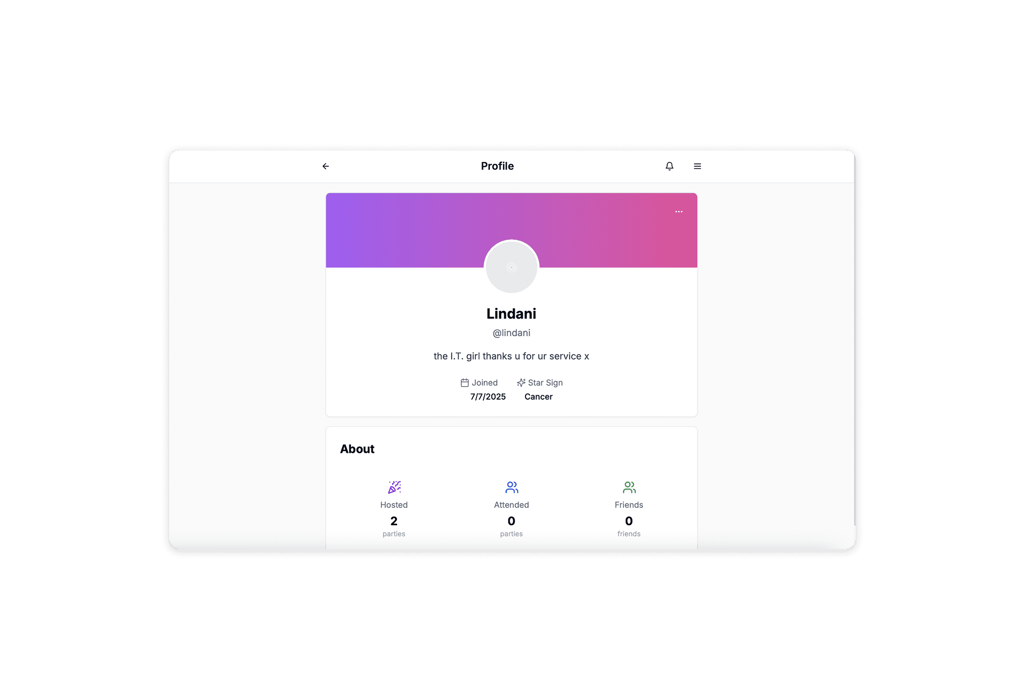 This ongoing, full-stack, mobile-first social media project addresses fragmented experiences and event organisation by providing a single platform for users to host and engage with events. I implemented real-time functionality via Supabase with localStorage fallbacks for offline use, building features such as event creation, live feed updates, RSVP management, friend connections and customisable user profiles. The app is designed to enhance social connections and bring people together and the development process has also strengthened my skills in prompt engineering and AI-assisted programming using tools like Cursor and Supabase AI. Deliverables include a fully interactive dashboard, real-time data handling and an accessible, responsive front-end suitable for desktop and mobile users.